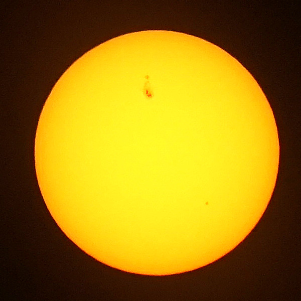 This picture is 180 degrees out of phase with our usual biweekly posts, but you do not see a giant sunspot every day. (You may see a more or less ordinary sunspot at about 4:30 on an imaginary clock, provided that the hour hand is short.) EarthSky at the link above discusses the sunspot in the picture: